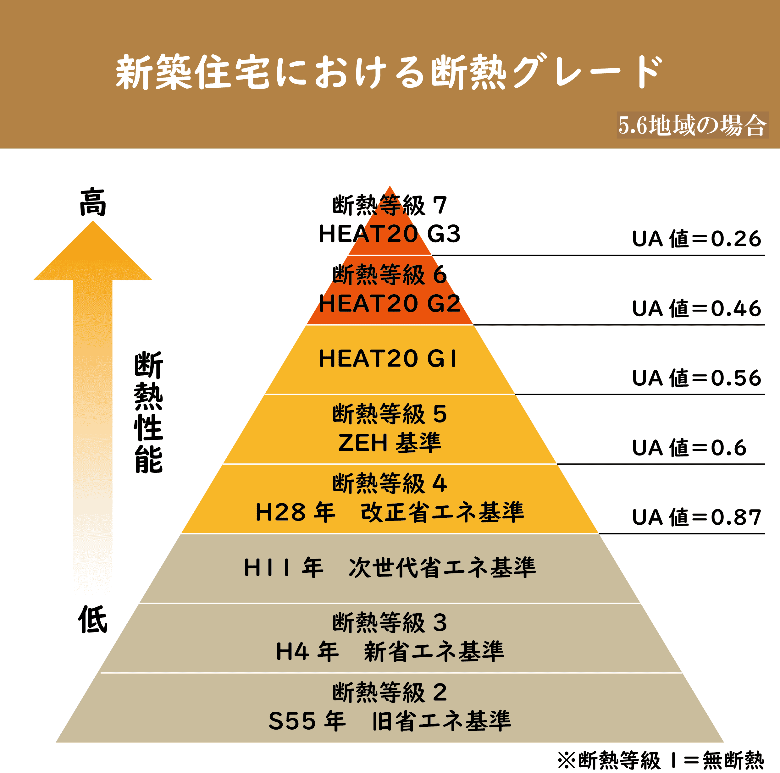 UA値をもとに、国が定めた断熱性能のレベルです。